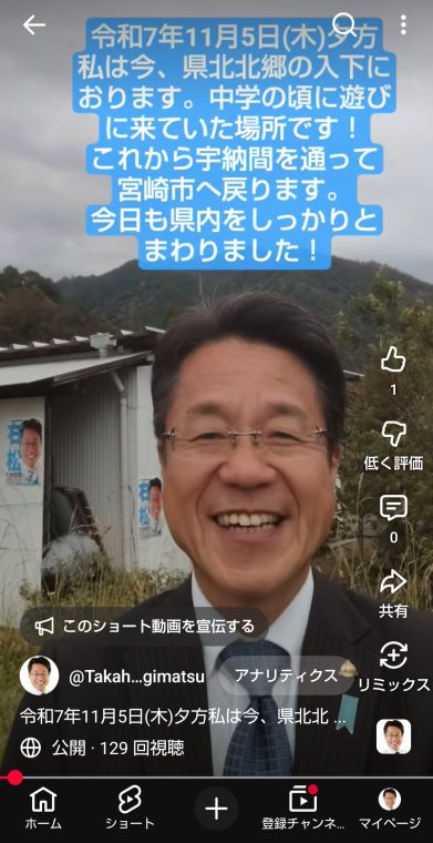 今朝の江平五差路での動画で申しましたように、日向ICから東郷町を通り、美郷町南郷(旧南郷村)をまわり、そしてその奥地にあります椎葉村栂尾まで足を運びました!山々に囲まれ離合もままならない地ですが、父の赴任先でもあった地で大事なところです。