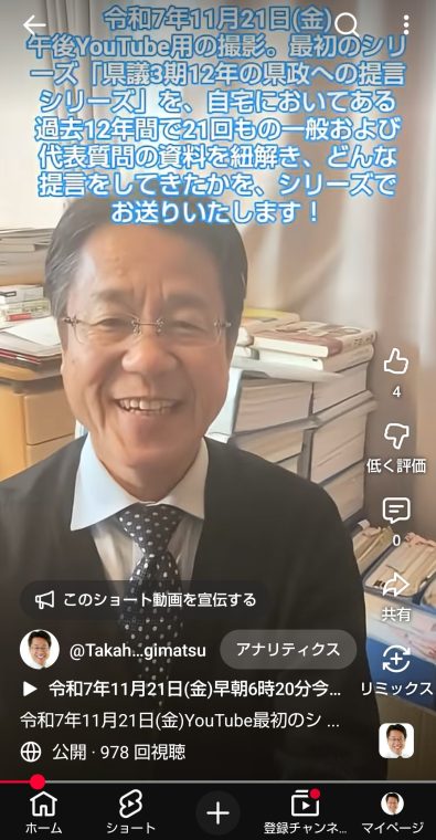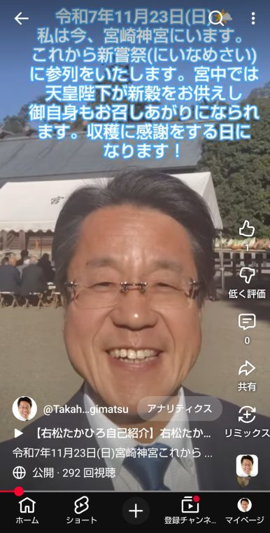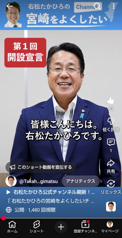 「 右松たかひろの宮崎をよくしたいチャンネル」 〜開設のあいさつ をショート動画として編集いたしました!