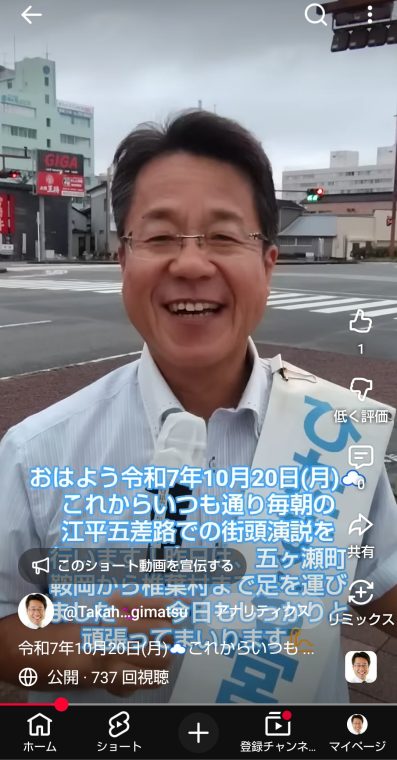 冒頭に、ショート動画を撮影し、YouTubeにアップしましたのでぜひご覧ください!チャンネル登録がまだの方は、これから毎日ように配信しますので、登録をよろしくお願いいたします。