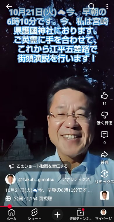 今日は、江平五差路での街頭演説の前に、宮崎県護國神社にて参拝をしました。