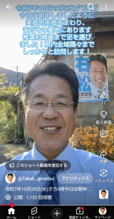 今朝の江平五差路での動画で申しましたように、日向ICから東郷町を通り、美郷町南郷(旧南郷村)をまわり、そしてその奥地にあります椎葉村栂尾まで足を運びました!山々に囲まれ離合もままならない地ですが、父の赴任先でもあった地で大事なところです。