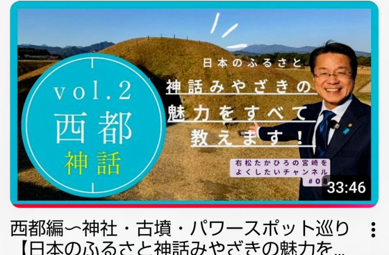 右松たかひろの宮崎をよくしたいチャンネルの第8回目の動画は、【日本のふるさと~神話みやざきの魅力をすべて教えます!シリーズ②】西都編です。