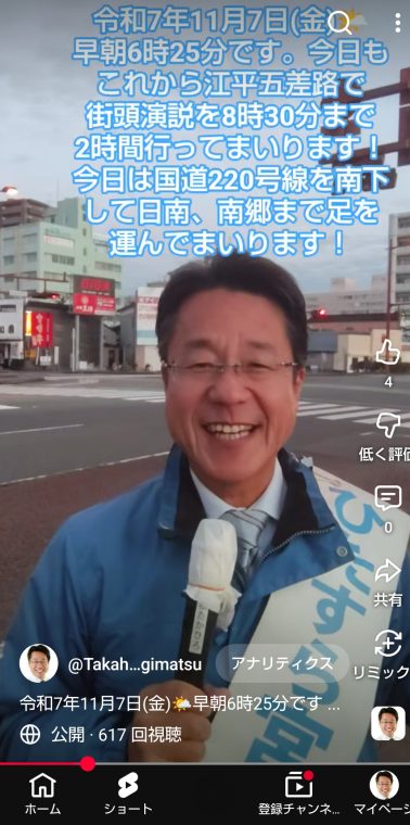 今朝は早朝の4時には起床し、本日の行動計画を立てたり、様々な事務処理をこなして、いつも通り6時20分から江平五差路での街頭演説をスタートしました!