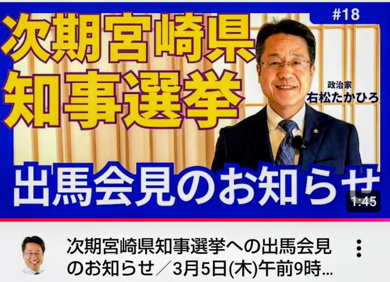 私、右松たかひろは、次期宮崎県知事選挙に出馬することを決断いたしました。