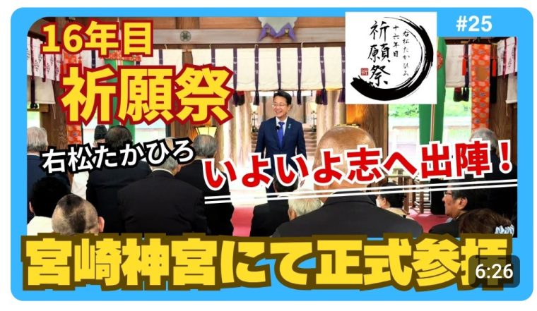 4月26日(日)に『右松たかひろ「16年目祈願祭』を宮崎神宮にて開催しました。その模様をどうぞご視聴ください!