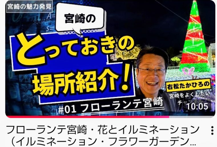右松たかひろの公式チャンネルは、「右松たかひろの宮崎をよくしたいチャンネル」と刷新して、これまで以上に内容を充実させています。